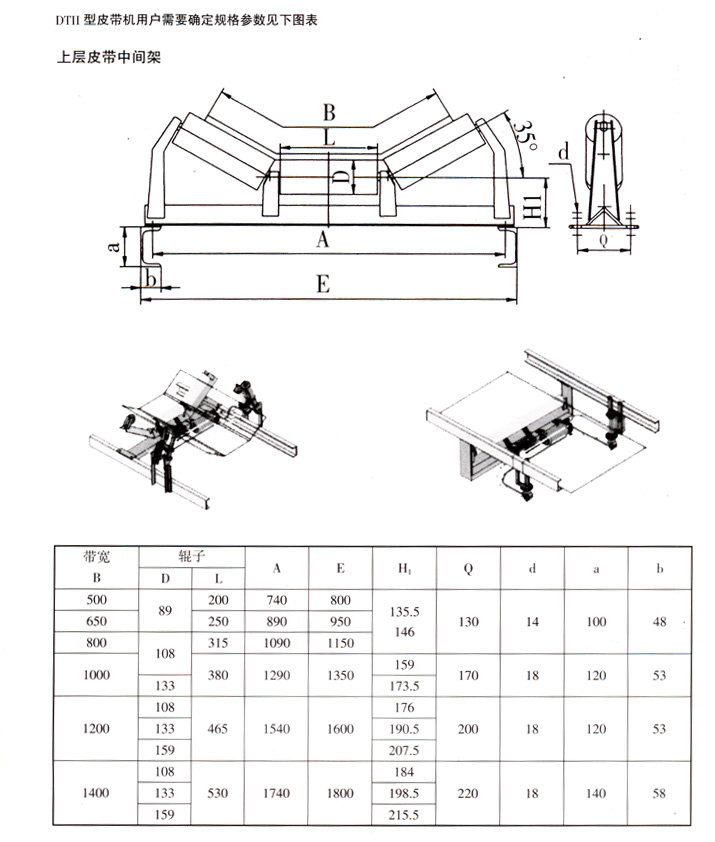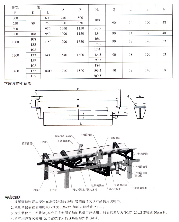 1、為了安裝方便、性能可靠,建議用戶選用本公司與之相配套的專用調(diào)心托輥,并提供輥?zhàn)又睆剑?9/108/133/159)