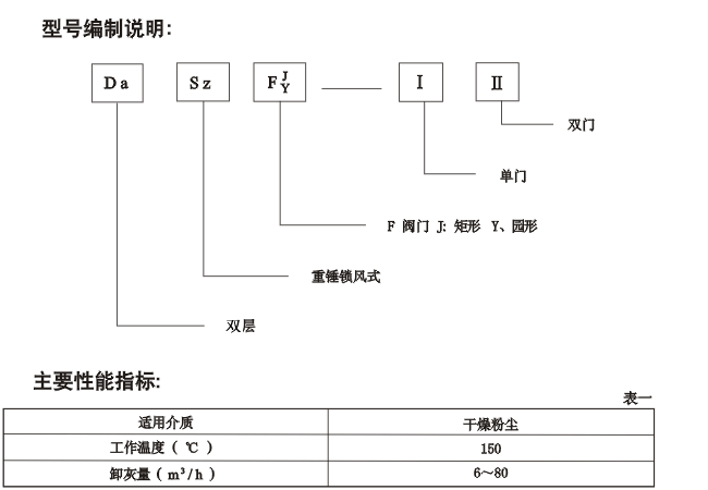 該系列閥門的閥板在物料重力作用下自動開啟,物料下落后,配重杠桿系統(tǒng)使閥板自動復(fù)位,防止野風吹人,從而完成物料輸送。