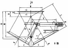 該產(chǎn)品主要由閥體、閥軸、閥板、曲柄機構(gòu)、電液推桿等組成,工作時電液推桿的直線往復(fù)運動通過曲柄帶動閥軸、閥板作一定角度的擺動,從而輸送物料、控制物料的流向及流量。